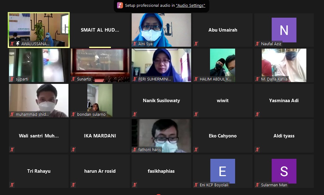 Acara ini selain dihadiri oleh wali peserta didik baru, juga dihadiri oleh perwakilan YPIT Al Huda Wonogiri, Ustadz Gatot Tri Widodo, juga segenap dewan guru SMAIT Al Huda yang mengikuti dari rumah masing-masing.