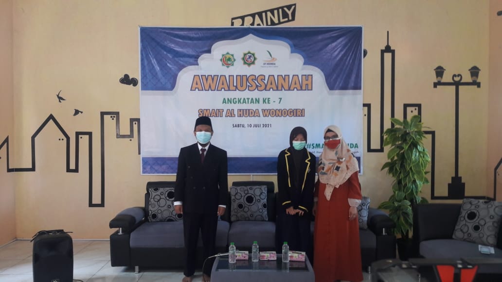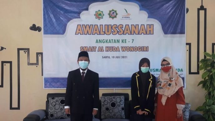 Sabtu, 10/7/21, segenap keluarga besar SMAIT Al Huda Wonogiri menyambut kehadiran warga baru SMAIDA. Peserta didik kelas X sejumlah 69 anak hadir menjadi warga baru SMAIDA. Meskipun acara ini diadakan secara daring, karena situasi PPKM, tetapi tidak mengurangi semangat para orang tua/wali dan juga peserta didik baru dalam menyambut hadirnya tahun ajaran 2021/2022. Agenda awalussanah diisi dengan acara seremonial simbolis berupa penyematan jas almamater dari Kepala Sekolah Ustadz Suwito kepada peserta didik yang didampingi oleh wali santri, dan juga tausiyah oleh Mudir PPIT Al Huda Ustadz Parmanto.