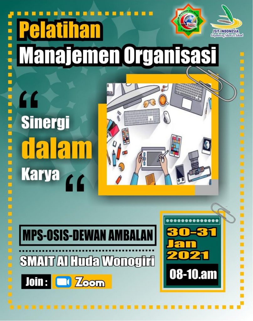 SMAIDA, dalam hal ini kesiswaan, berusaha untuk membina para pengurus organisasi siswa untuk tetap efektif dan efisien dalam mengelola masing- masing organisasi melalui kegiatan Training Manajemen Organisasi yang akan dilaksanakan selama dua hari, Sabtu-Ahad (30-31/1/2021), secara daring melalui zoom. Kegiatan ini mengambil tema “Sinergi dalam Karya”. Seluruh pengurus OSIS, MPS, dan juga Dewan Ambalan menjadi peserta pada kegiatan tersebut.
