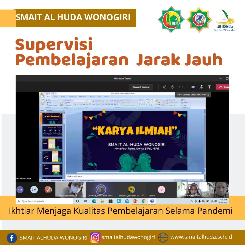 Pandemi yang memaksa semua insan pendidikan untuk berpikir keras, bagaimana mewujudkan pembelajaran yang tetap berkualitas meski para siswa belajar dari rumah masing-masing. Banyak aspek yang harus disesuaikan agar hasil pembelajaran tetap maksimal. Salah satu aspek yang harus dijaga adalah kualitas pembelajaran dari para guru. Dan, demi menjaga agar kualitas pengajaran itu tetap baik dan terpantau, maka SMAIT Al Huda, dalam hal ini Waka Kurikulum dan Kepala Sekolah mengagendakan untuk mengadakan supervisi pembelajaran yang dilaksanakan oleh para guru.